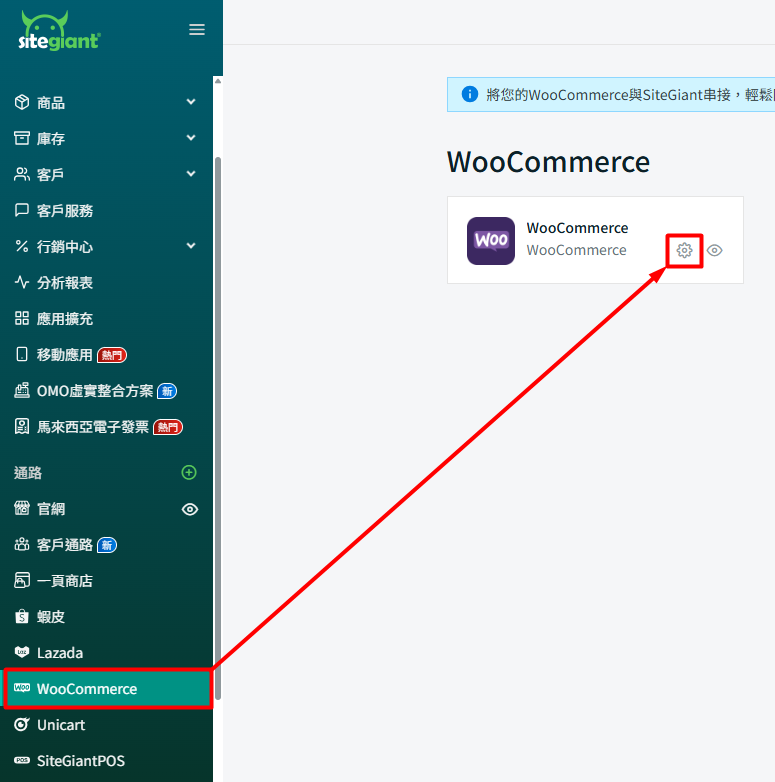 您已成功將您的 WooCommerce 帳戶串接至 SiteGiant!