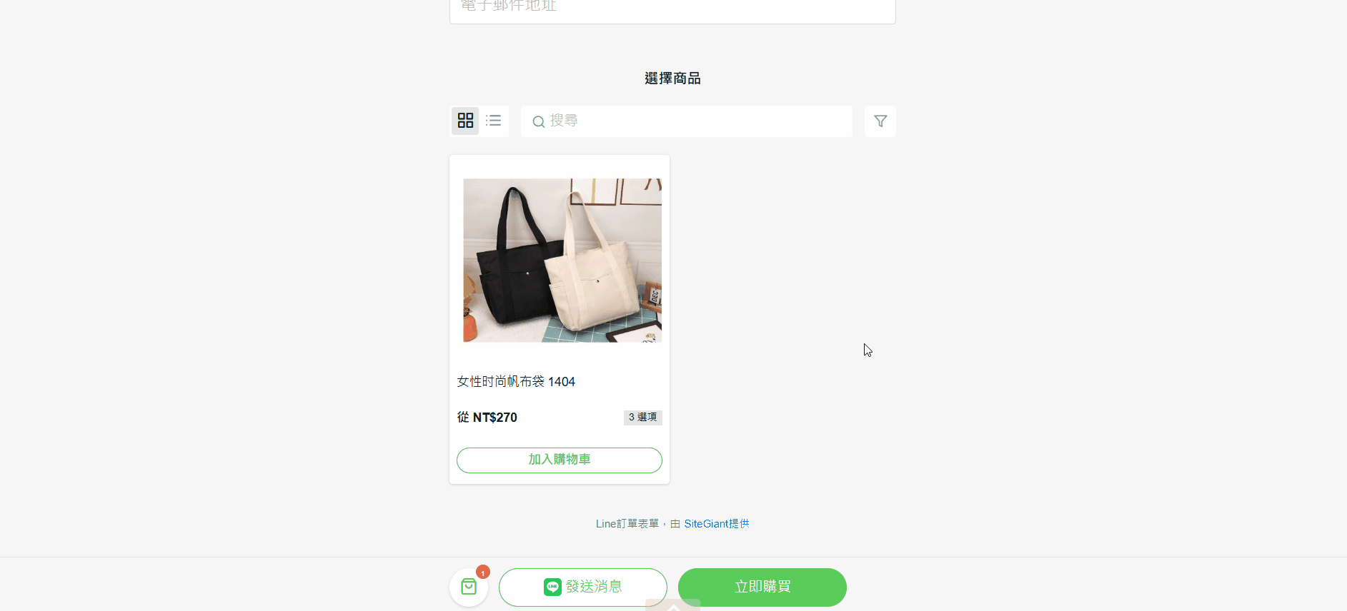 步驟三:客戶將導向至您的 SiteGiant 官網(Webstore)購物車頁面以進行結帳。