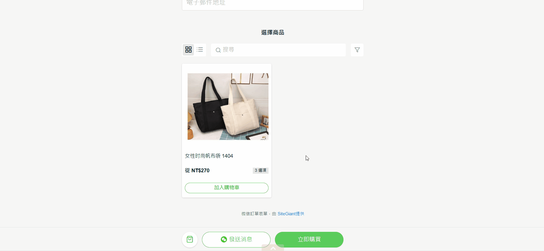 步驟二:客戶可以查看訂單表單中的商品。調整他們希望購買的商品數量 > 點擊加入購物車按鈕以繼續。