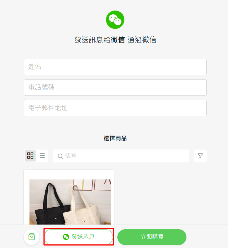 微信商務允許您創建訂單表單,讓您的客戶可以直接通過微信下單,系統將引導客戶到包含所選產品的結帳頁面。