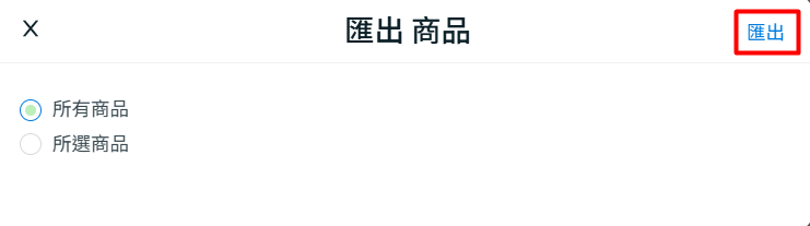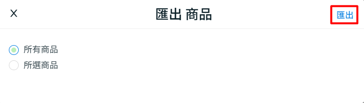 步驟二:選擇匯出所有商品或所選商品 > 點擊匯出。