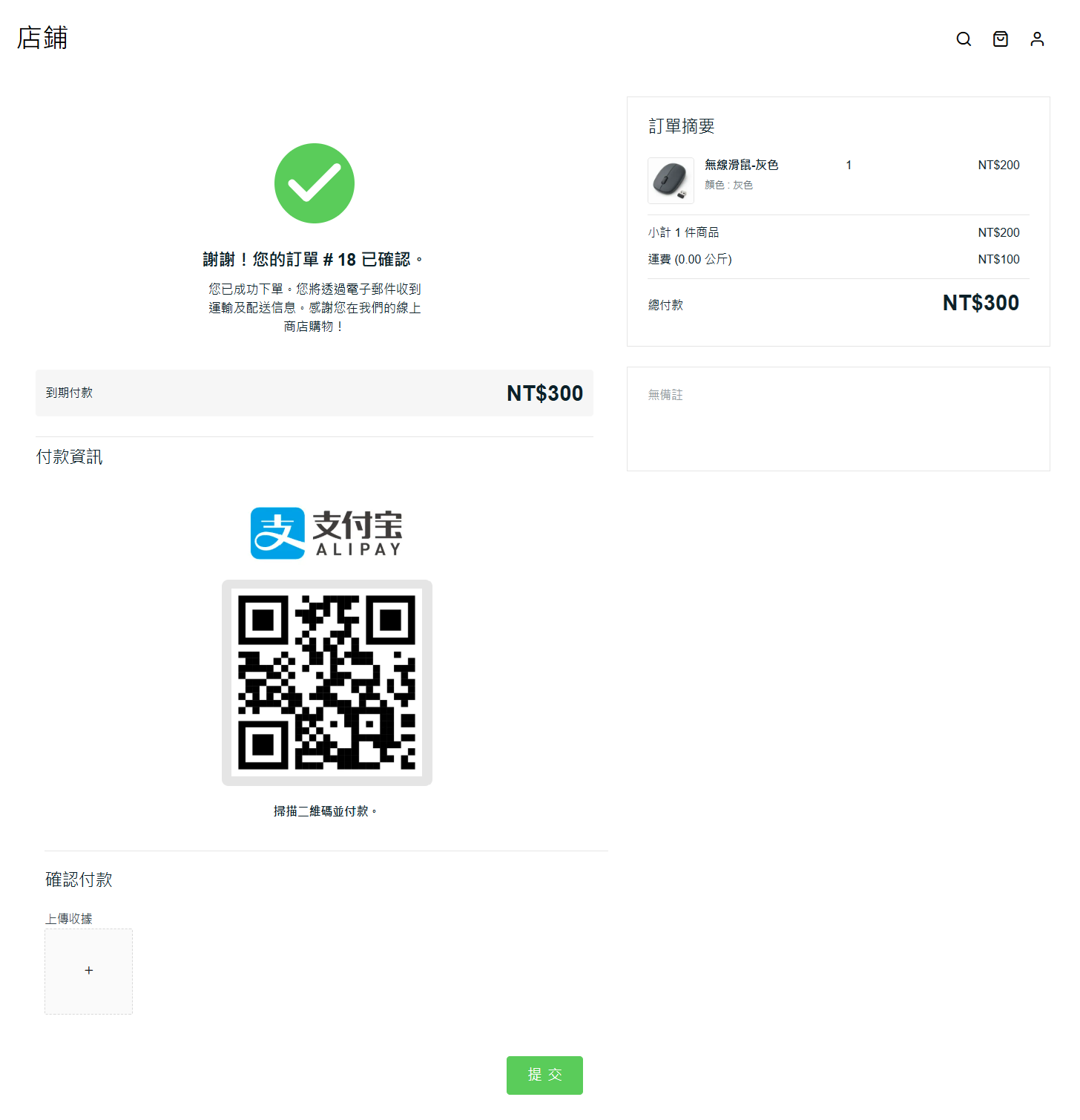 步驟二:付款信息將再次顯示在此頁面上 > 當客戶成功付款後,可在下方上傳收據或付款證明,然後提交。