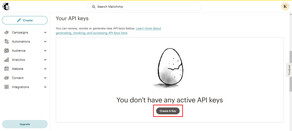 步驟三:向下滑至 Your API keys 區段 > 點擊 Create A Key 按鈕