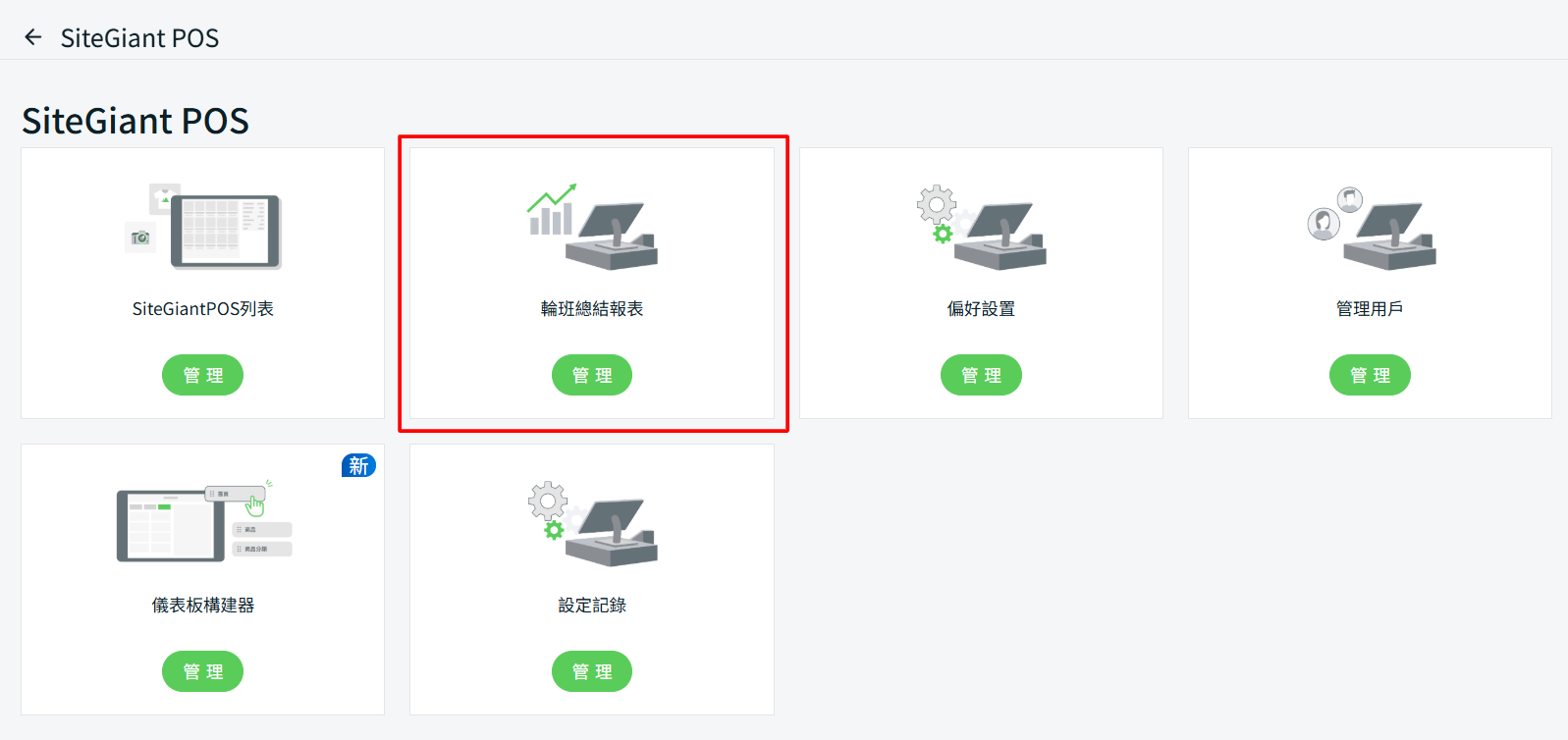 步驟一: 返回 SiteGiant 賣家中心 > 在 SiteGiant POS 通路中,點擊輪班總結報表。