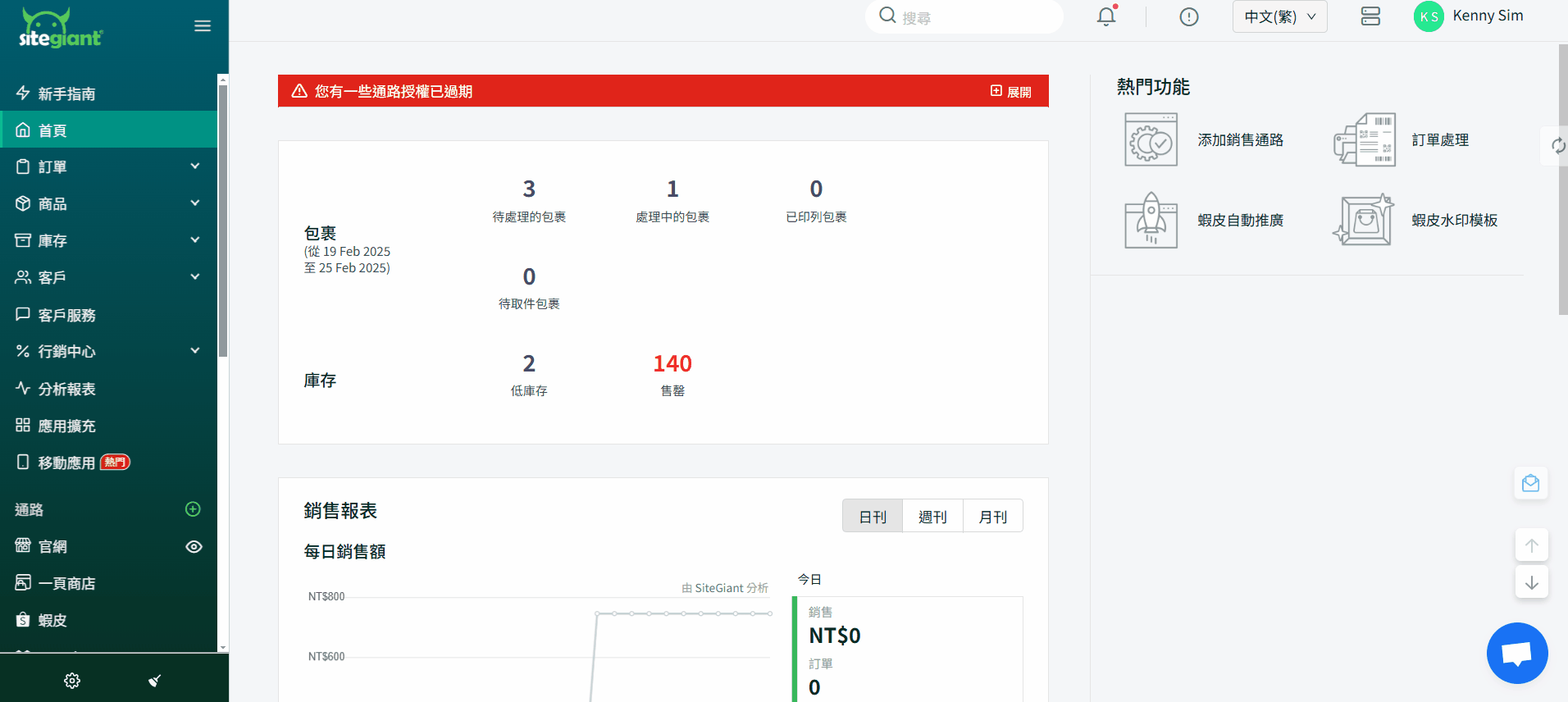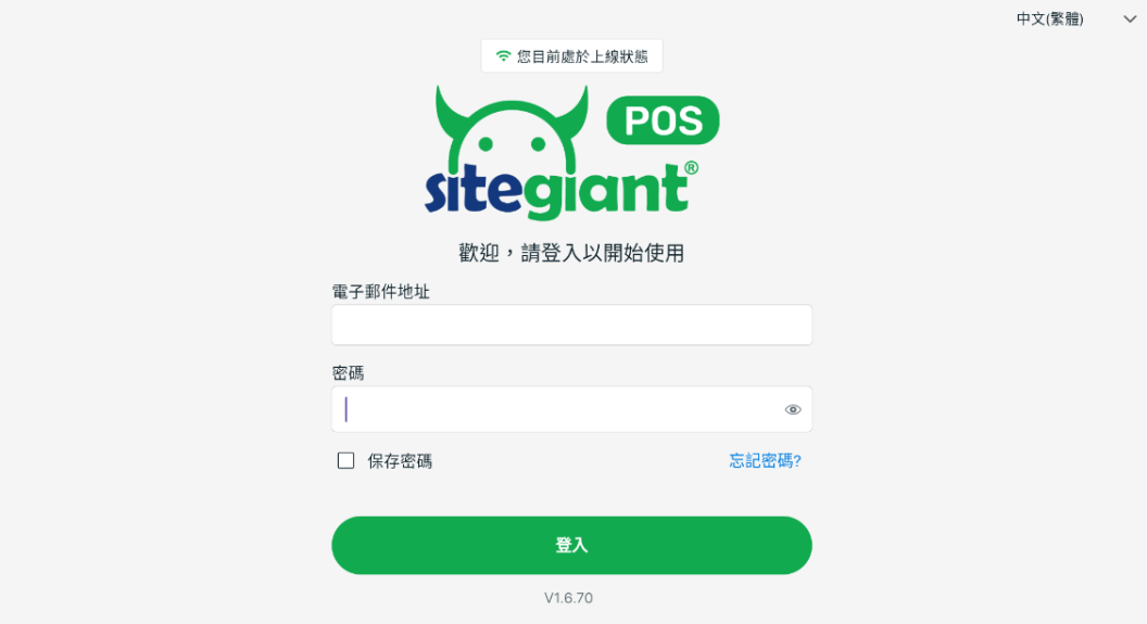 步驟一:在您的設備中登入 SiteGiant POS 系統。