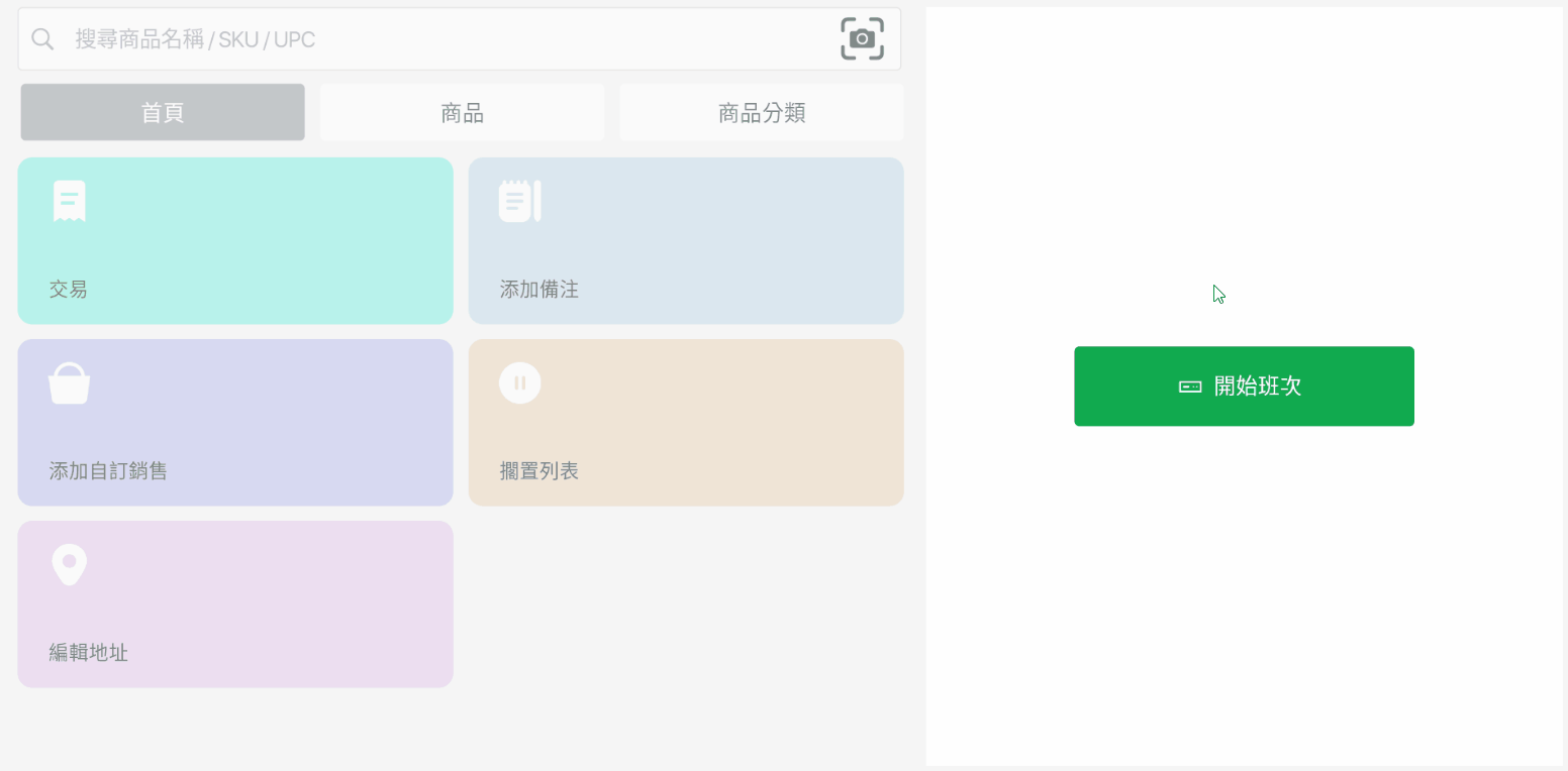 步驟四: 點擊開始班次 > 輸入開櫃金額 > 選擇打開錢櫃或開始班次。