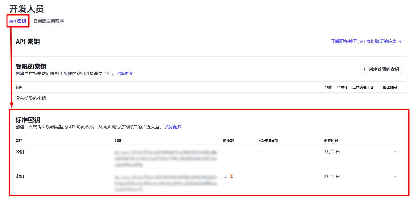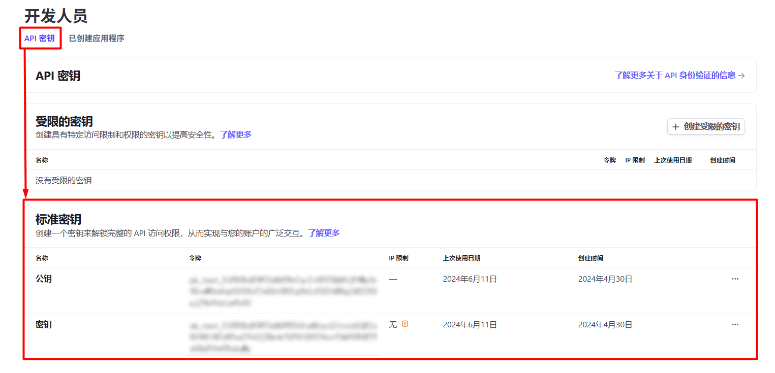步驟二:選擇 API 密鑰選項卡 > 複製公鑰和密鑰以供稍後使用