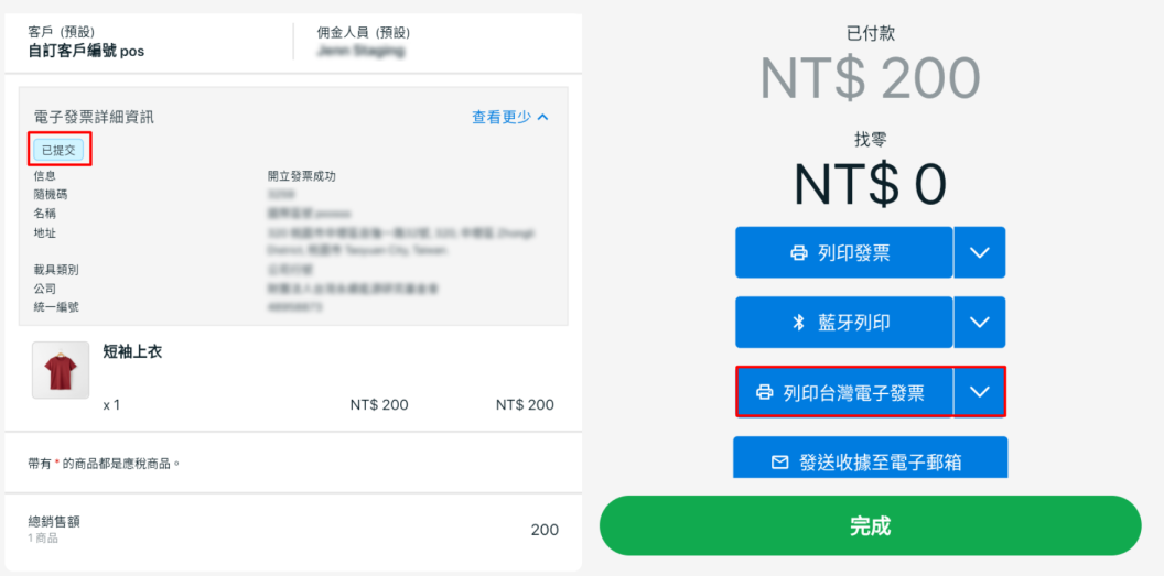 步驟四:已成功提交,可點擊列印台灣電子發票進行列印。