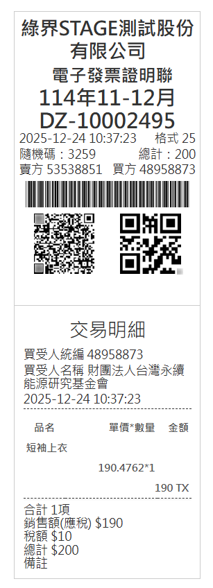 v. 電子發票上顯示的賣方統一編號,將依系統後台所設定的賣方統一編號顯示。