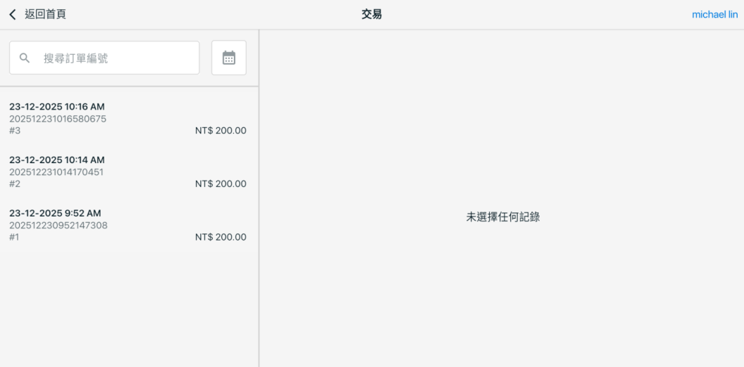 步驟一:若需查詢過往訂單的電子發票,可登入 SiteGiant POS App > 交易 > 點擊該訂單