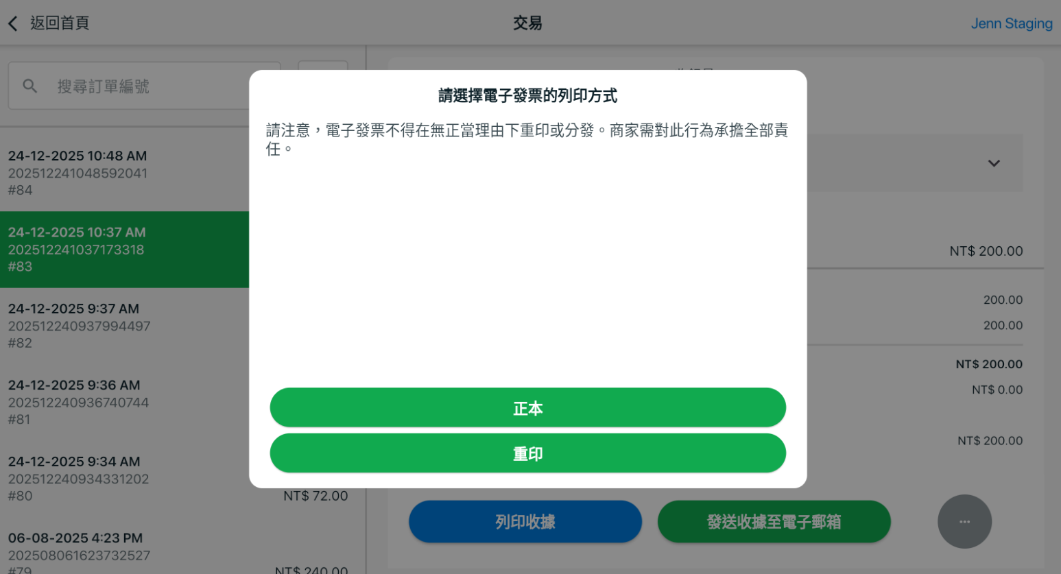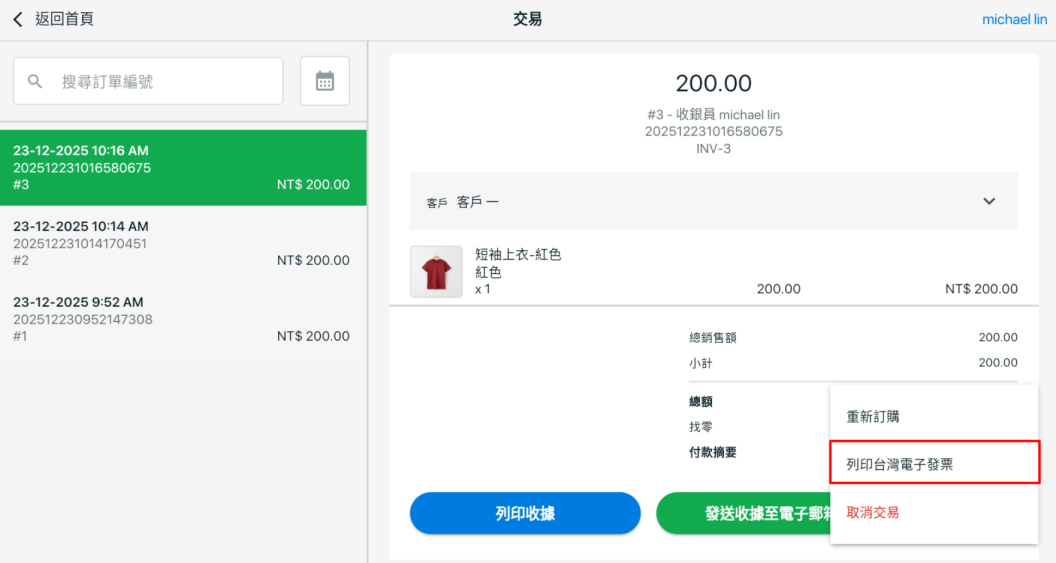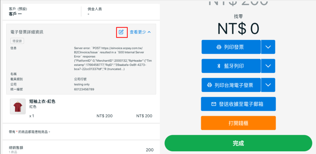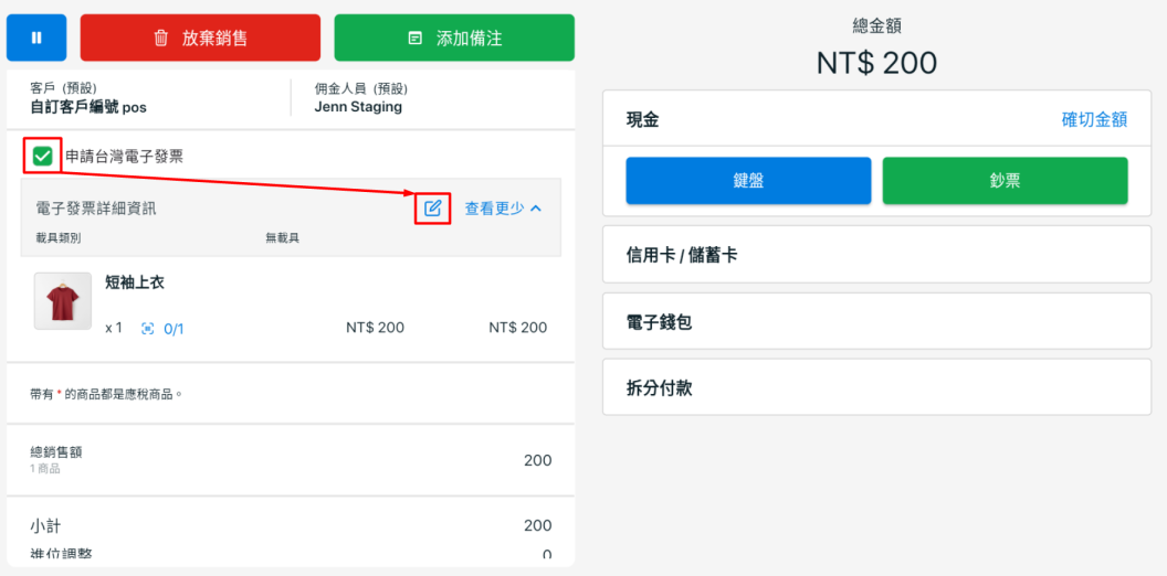 i. 綠界電子發票申請選項僅會顯示於貨幣設定為新台幣 (NT$),且已啟用綠界電子發票的 POS 系統中。