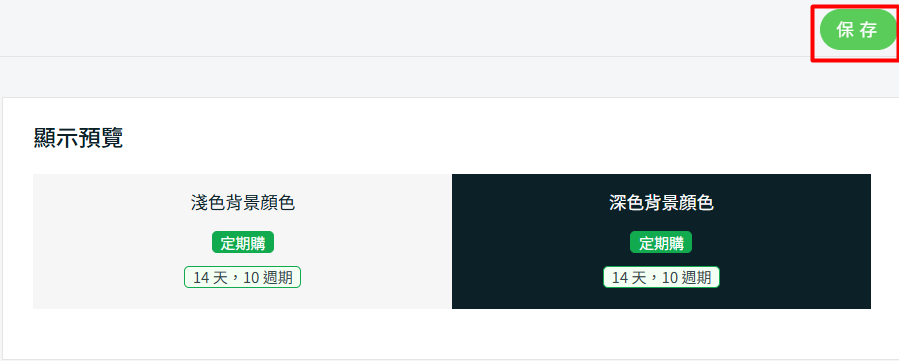 步驟三:完成所有設定後,您可在顯示預覽中查看定期購商品的顏色>接著點擊保存。