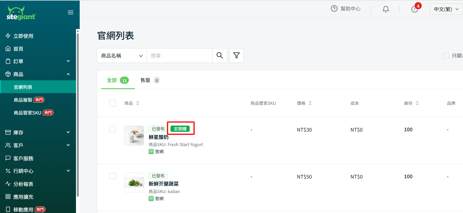 步驟三:設定完成後,您將在商品列表中看到定期購標籤。
