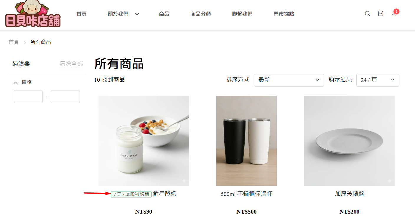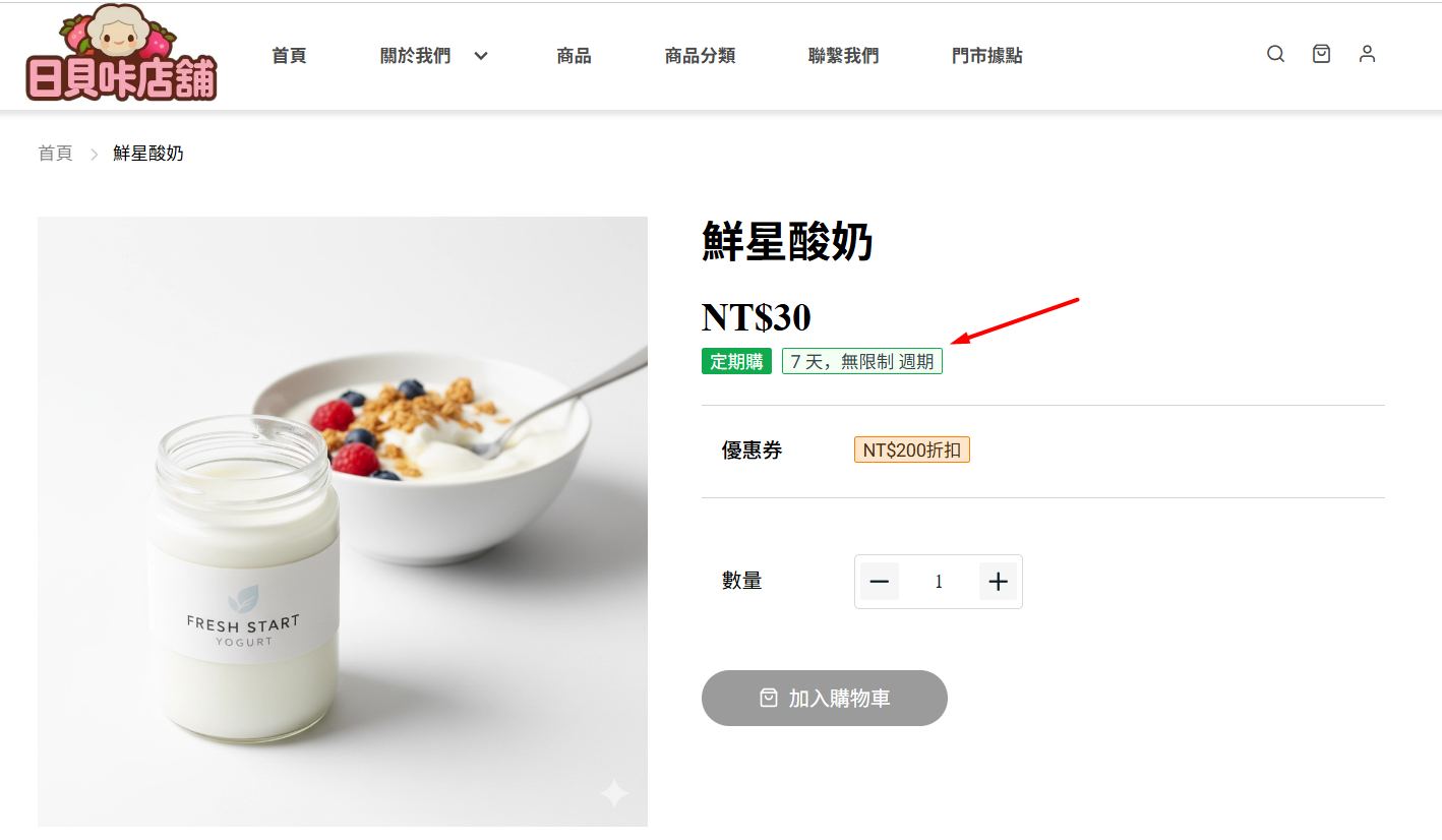 步驟一:在商品列表中,您可以看到定期購商品標籤。