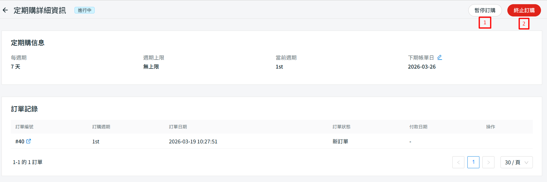 1. 暫停定購:定購將被暫停,在恢復之前不會再產生新的訂單。