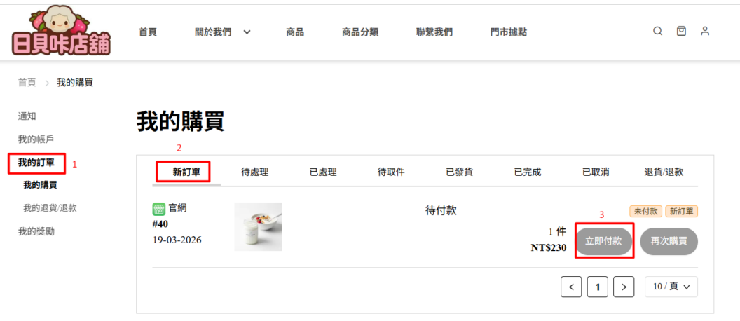 步驟二:客戶也可以前往我的訂單>新訂單>立即付款以完成付款。