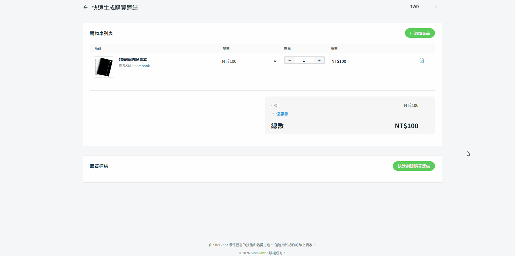 📌注意:快速購買連結將不會被保存到系統中。生成後,您可以直接複製連結。