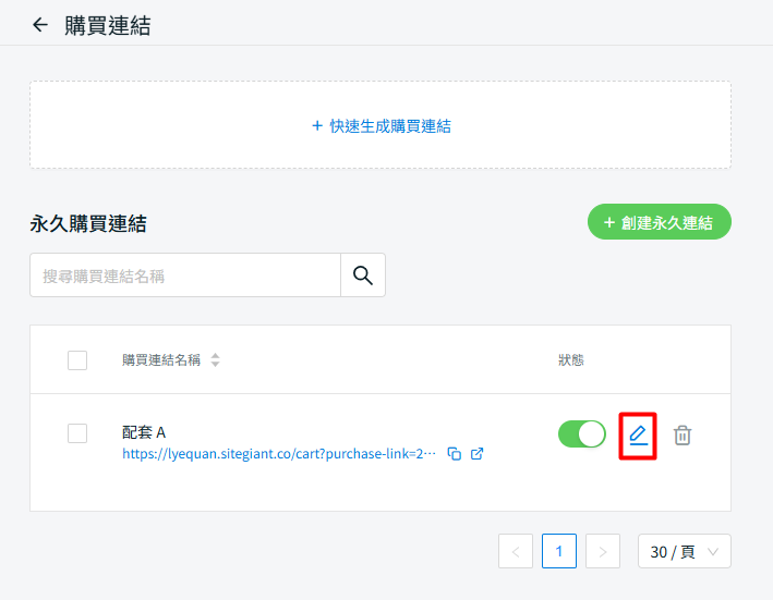 若賣家需要與客戶分享大量購買連結,可使用永久購買連結功能。他們可以先創建連結,然後將其保存在系統中,再將相關連結分享給客戶。