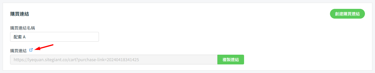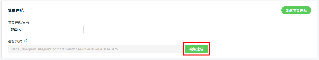步驟三:輸入購買連結名稱 > 點擊創建購買連結。