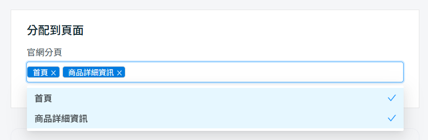 步驟三:在分配到頁面設置中,選擇欲顯示銷售激發彈窗的頁面